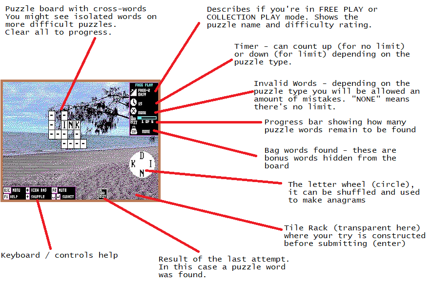 Each puzzle contains an amount of "puzzle words" which you will need to find to progress.