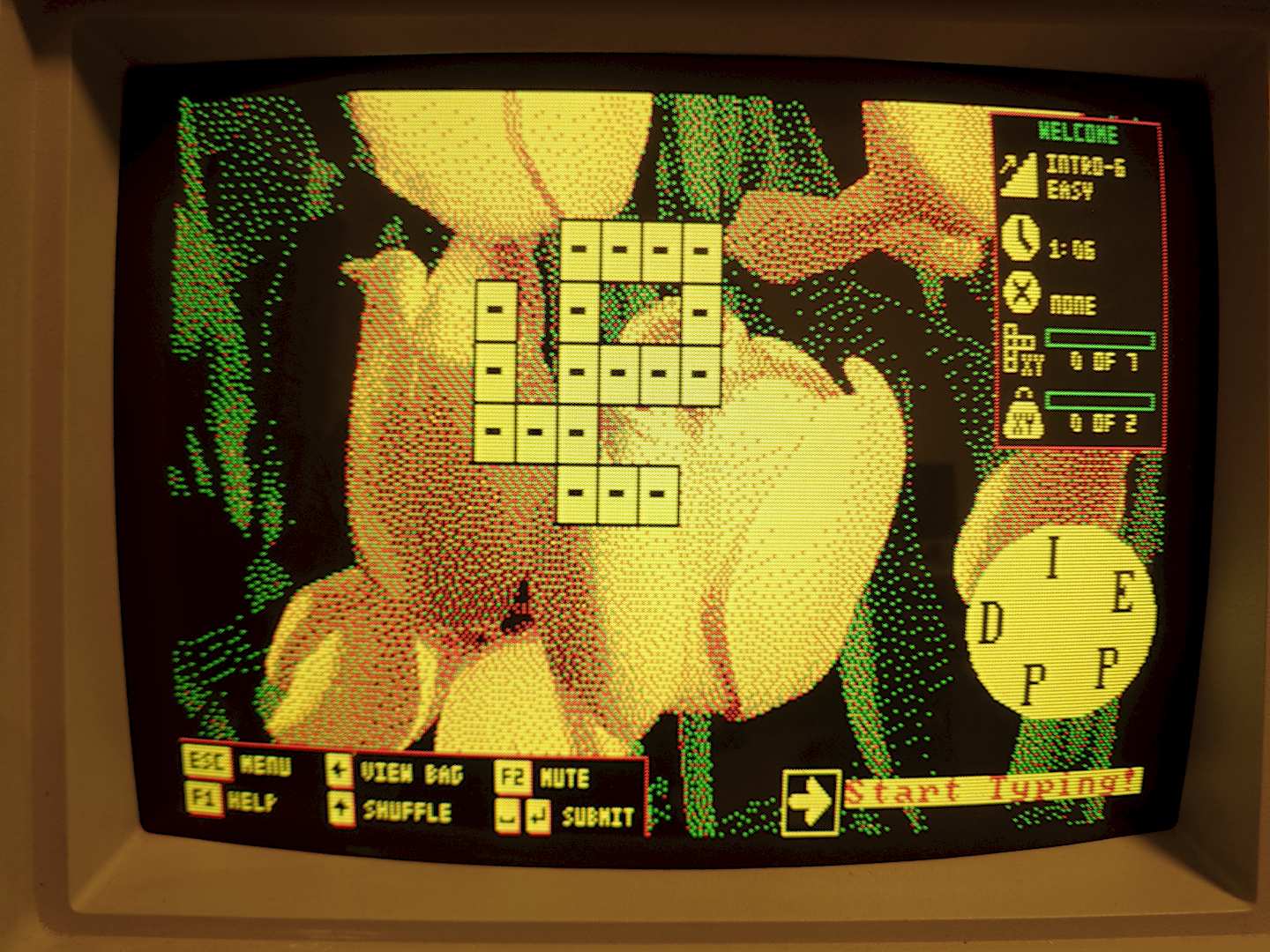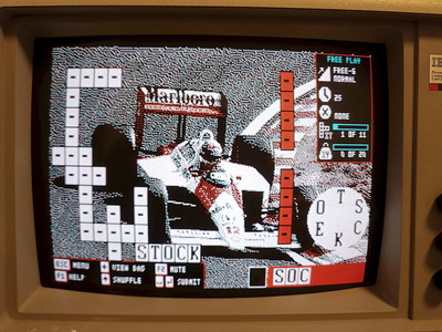 Fitting the game board, input controls and progress information on a 320x200 pixel screen only using 4 colours is not an easy task.